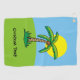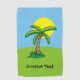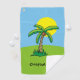 Cartoon illustration of a palm tree. Custom background colour. Custom text.