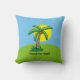 Cartoon illustration of a palm tree. Custom background colour. Custom text on both sides.