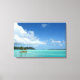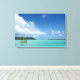 Canvas landscape print of a small island with a palm tree in the turquoise lagoon of the tropical island Bora Bora near Tahiti in French Polynesia.