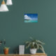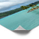 Poster print of a small island with a palm tree in the turquoise lagoon of the tropical island Bora Bora near Tahiti in French Polynesia.