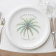This watercolor palm tree paper plate adds a breezy tropical vibe with a green beach inspired aesthetic, perfect for destination weddings, summer parties, bridal showers, luaus, and coastal birthday celebrations. A fun and practical choice for beach loving couples, friends, or family gatherings, it brings island charm to any table setting. The hand painted palm tree design creates a relaxed and elegant atmosphere. Personalise the plate text to match your event.