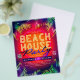 Abstract Colourful Palm Tree Leaves Beach House Party, Glow Typography Club Event Marketing Advertisement Flyer. Customise To Your Liking.