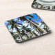 Palm tree leaf design drinks mats. Bold design of tropical Palm Trees in a posterised style. Blue, green and white.