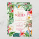 Tropical flowers with palm tree. This invitation is easily customised for your event by simply adding your details.