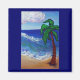 Detail of Palm Tree on the beach with the ocean and sky behind. Image from "Surfing Angel Raphael" painting.