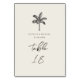 Palm Tree Ivory Minimalist Destination Wedding Table Number Card. All the texts are pre-arranged for you to personalise easily and quickly with your own details.
