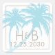 Aqua blue and sand tan colour palm tree with customisable monogram and wedding date, or change the text and colours to suit your needs for your tropical beach destination wedding or beach theme party.