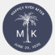 Palm Tree Monogram Navy Blue Tropical Wedding Classic Round Sticker