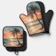 Palm Tree On Tropical Beach At Sunset Oven Mitt & Pot Holder Set