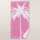Palm Tree Pink White Tropical Elegant Monogram Bath Towel Set