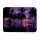 This photo features a row of palm trees reflections on a tropical beach at Sunrise.
