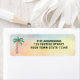 These island style return address labels are decorated with a hand painted palm tree decorated with lights and baubles on a watercolor background.
