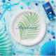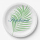 Palm Tree Sage Green Watercolor Leaves Name Paper Plate