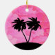 Palm Tree Silhouette Against Dawn Pink with Clouds Ceramic Tree Decoration