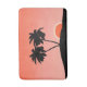 Bath mat in a black silhouette of palm trees on a tropical island, against a sunset orange gradient background