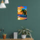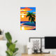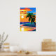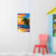 AI generated palm tree, ocean and sunset, blue, orange and yellow retro colours. generativecontent