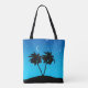 Palm Tree Silhouette, Evening Blue with Stars Tote Bag