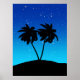 Palm Tree Silhouette on Evening Blue with Stars Poster