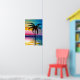 Palm Tree Silhouette, Seagull and Colourful Sunset Poster