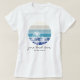 Customise this cute beachy tee with your town or city name in handwritten script, with the state beneath in modern sans serif. Design features a vintage style blue gradient sunset with palm tree silhouettes overlaid.