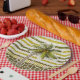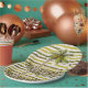 Chic tropical palm tree on stripes and animal print spots party paper plates. MATCHING invitations, paper plates and more in our store.