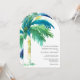Celebrate the beauty of a beach wedding in Florida with these tropical wedding invitations, designed in a modern arch design and featuring hand-painted watercolor palm tree artwork in soft shades of blue, turquoise, and green. Inspired by the vibrant charm of Key West, this suite blends relaxed island style with contemporary elegance, making it perfect for tropical celebrations and seaside ceremonies.
