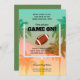 Football game day party invitations super fans will love featuring palm trees and a football sailing through the uprights. Perfect invitations for the big game. MATCHING plates, napkins, coasters, t-shirts, beverage labels, can coolers and more in our store.
