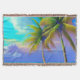 Introducing our stunning throw blanket, designed to transport you to a tropical paradise every time you use it. Featuring a beautiful design of palm trees silhouetted against a sky with varying shades of blue, this blanket captures the serene beauty of the beach as night falls or a storm rolls in. The white and blue clouds and other colours like yellow and purple add a touch of vibrancy to the design, making it a perfect addition to any room in your home.