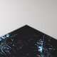 Posterised design of palm trees, beach, and sea. Blue and black scheme