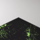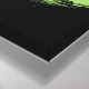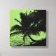 Posterised design of palm trees, beach, and sea. Green and black scheme
