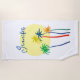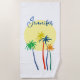 Simple, modern, unique, colourful, tropical beach towel with palm trees and monogram - name.