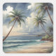 Palm Trees Hawaiian Travel Honolulu Blue Sea Square Sticker