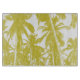 Bold decoration of palm trees in a posterised style. Gold with a white background.