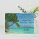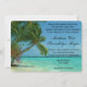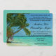 This design is a watercolor painting of a beach scene with palm trees, a flowery bush and the ocean in beautiful shades of blue. Personalise this invitation with your upcoming wedding information. The back has space for more details. The background colour is a sea foam green, you can change the colour or remove it by clicking on the Customise It button. Then choose Edit, Background. A colour palette will appear. Once you've chosen another colour you should see the changes immediately. To save your changes click on Done.