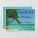 This design is a watercolor painting of a beach scene with palm trees, a flowery bush and the ocean in beautiful shades of blue. Personalise this postcard with your upcoming wedding information. The back has space for more details. The background colour is a sea foam green, you can change the colour or remove it by clicking on the Customise It button. Then choose Edit, Background. A colour palette will appear. Once you've chosen another colour you should see the changes immediately. To save your changes click on Done.