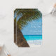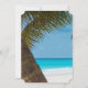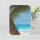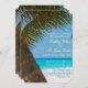 Palm trees on beach wedding invitations, when the bride’s parents are hosting, including the groom’s parents names on the invitation, with customisable text