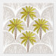 Green palm trees with coconuts dot the taupe sands of the tropical islands. Part of Coastal Living collection by cheriedesues_studio.