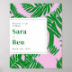 Palm Trees Pink + Green Beach Wedding Welcome Poster