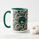 This Polynesian inspired mug features a pattern of palm trees and waves in green -- with a hint of teal, tan, brown, and creamy off-white. Your monogram initials appear in a dark green circle, along with palm trees, on each side of the mug. If you or your recipient loves the beach, this mug would be a great way to start your morning java or relax with afternoon teaa. Make sure to type your or your recipient's initials in the Personalise section.