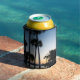 Can cooler featuring a silhouette of palm trees during sunrise in Destin, Florida, United States along a sidewalk and gazebo is at Four Prong Lake. Looking for more products? Visit my store: http://www.zazzle.com/timelessmomentsphtgy