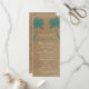 Palm Trees Distressed Vintage Teal Blue Turquoise Beach Vertical Wedding Programs with two palm trees at the top. The background is a distressed rustic brown paper look. These are perfect for beach wedding programs or destination wedding programs. This is a 4" x 9" vertical two sided wedding program. Just use the template fields to add your own wedding ceremony details or use the "Customise It" button to add or delete lines of text or move things around.