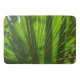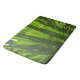 The original photograph by ZoeSPEAK on this large Bath Mat features the shadows of a saw palmetto frond over a background of a palmetto frond. The shadows form soft stripes across the detailed green bands of this tropical palm, with fronds shaped like big fans.