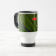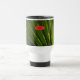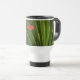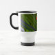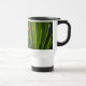 This Travel Mug features an original closeup photograph by ZoeSPEAK of a saw palmetto frond. Saw palmetto is a native plant of Florida, adding a beautiful green under-layer to the pine forests in the sunshine. In the photo, we see the details of the leaves as they fan out and seem to wrap the edge of the art, a lovely package from nature. There is an optional label, a red oval which reads “GREEN MUG”, as the mug is reusable instead of throwaway. The label adds a nice touch of colour irony, but can be removed if you prefer.