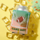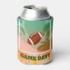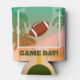 Football game day personalised can coolers for beer and soda cans and bottles featuring palm trees and a football sailing through the uprights.