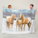 Palomino Appaloosa Horses In Snow Fleece Blanket