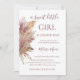 This elegant baby shower invitation displays a watercolor pampas with different shades of mauve pink. The font is shade of dark mauve pink but can easily by edited to a different colour. You can also bundle up with matching stationery and coordinating paper goods to go with. Napkins, plates, thank you cards and more. See Pampas Elegance collection.