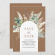 Amaze your guests with this elegant save the date featuring beautiful eucalyptus leaves and pampas grass. Simply add your event details on this easy-to-use template to make it a one-of-a-kind save the date card.