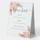 White background. Decorated with rose gold and pink florals, roses and pampas grass. With the text: Open bar. Personalise and add your bar menu.