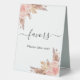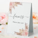 White background. Decorated with rose gold and pink florals, roses and pampas grass. With the text: Favours, please take one!