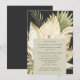 Boho desert bouquet post-wedding dinner party invitation with hand-painted watercolor palms, pampas grass, white orchids and dried leaves in natural earth tones on dark grey background. Easily customise the background and foreground colours, font style, layout, and add your favourite wedding photo on the back. Coordinating invitations and accessories available in store.